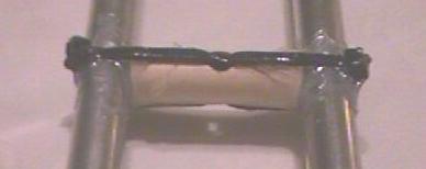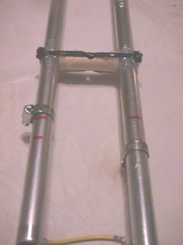 The separator : To provide mechanical rigidity, an insulating separator must be fitted near the top of the matching section joining both tubes. It is similar in dimension and technique to the shorting stub but is made out of PVC electrical conduit rather than aluminium.
