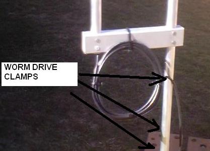 When all is done, the centre frequency is as desired and VSWR is negligible, it is time to put the plastic chair tips on the tops of the tubes, tighten the worm clamps and weatherproof as desired. Don't forget to weatherproof the slotted adjustments and their worm clamps with a marine varnish to prevent excessive oxidisation. If using the modified feed, remember to seal up the hole where the coax feed exits across to the main radiator with a good silicone sealant.